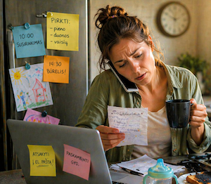 Verda košė. Skrudinate duoną. Maitinate vaiką. Bandote atsakyti į žinutę. Galvoje jau dėliojate pirkinių sąrašą.