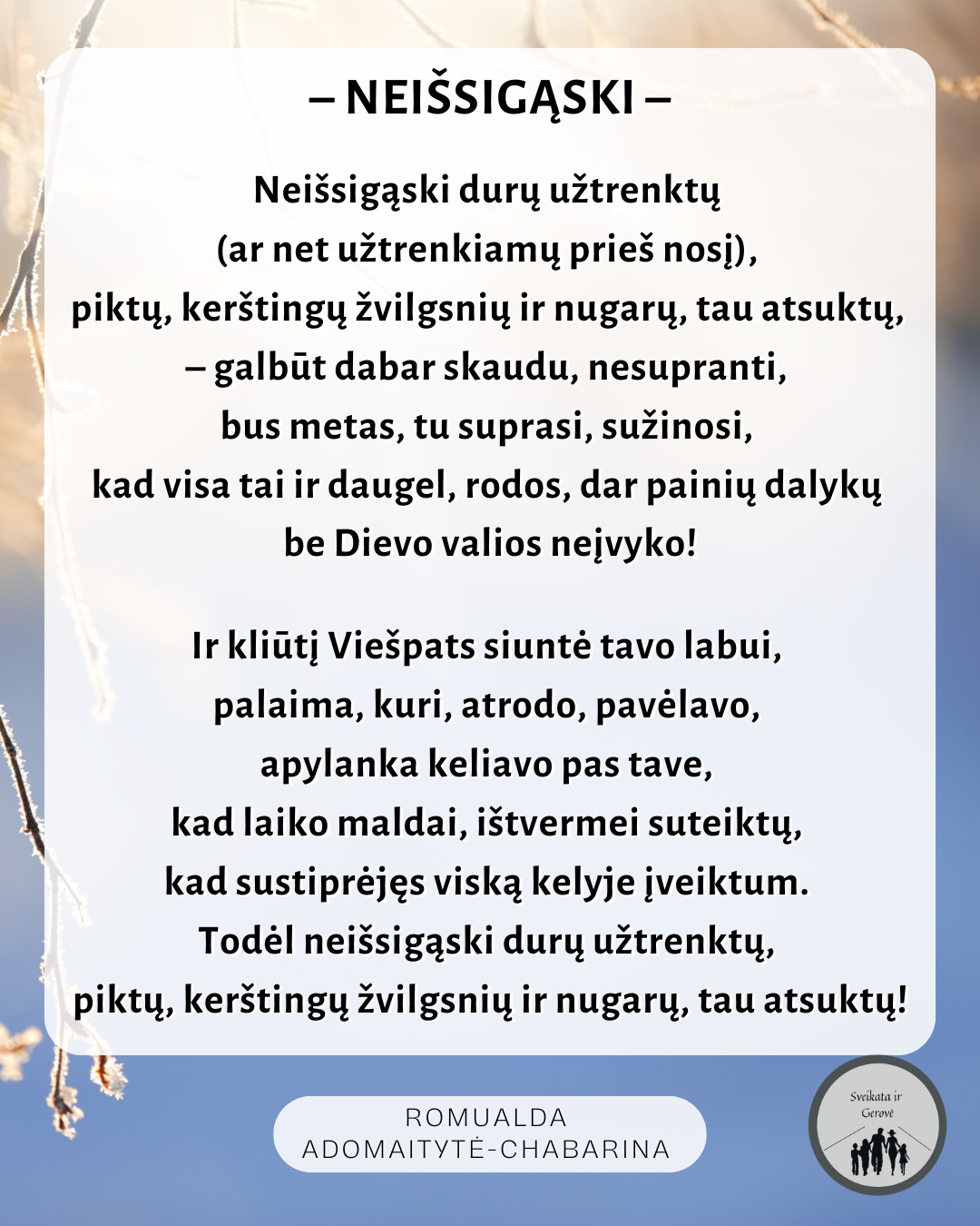 Šaltinis: Romualdos Adomaitytės-Chabarinos knyga „Nesipykit, keliaujantys paukščiai“