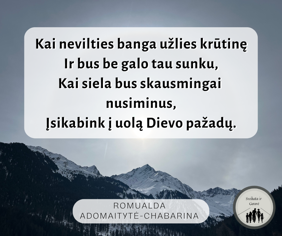 Paskelbta 2026-02-272026-02-27 viktorijaKai nevilties banga užlies… Šaltinis: Romualdos Adomaitytės-Chabarinos knyga „Džiaugsmo edelveisas“ Please follow and like us: 0 2020