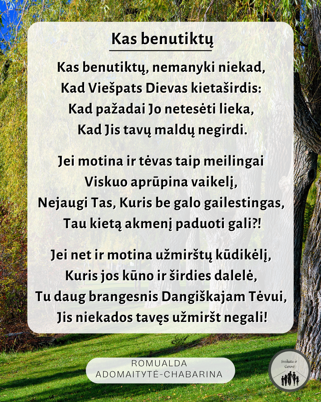 „Viešpatie, Tavo Žodis – žibintas mano žingsniams ir šviesa mano takui.“ (Biblija, Psalmių knyga 119, 105)